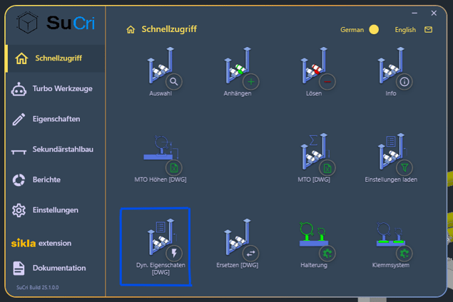 Nach der Platzierung aller Bauteile führen Sie den Befehl "Dyn. Eigenschaften" aus. SuCri ergänzt daraufhin automatisch die Eigenschaften der Klemmsysteme.